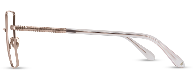 - Temple design emulates Aspinal croc leather