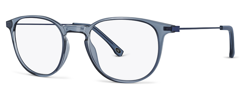 Stainless Steel Sculpted temple trim with integrated flex hinge Angular eye…